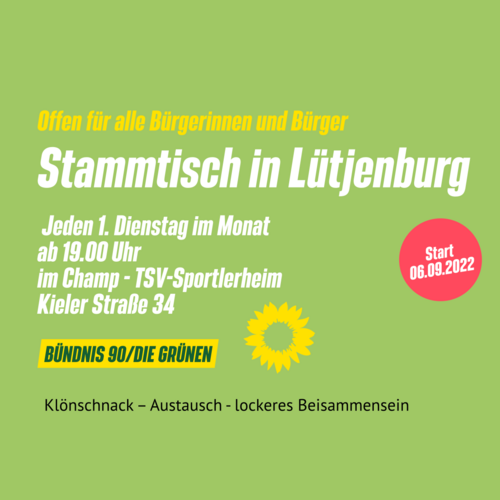 Der Ortsverband Lütjenburg Bündnis90/Die Grünen lädt Grüne Mitglieder und interessierte Bürger*innen ein zur