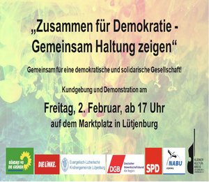 Wir gehen gemeinsam gegen die sogenannten „Remigrationspläne“ der AfD auf die Straße. Wir demonstrieren gegen den Rechtsruck in unserer Gesellschaft. In Lütjenburg und Umgebung ist kein Platz für rechtsextremes Denken. Wir wenden uns gegen Hass und Hetze!