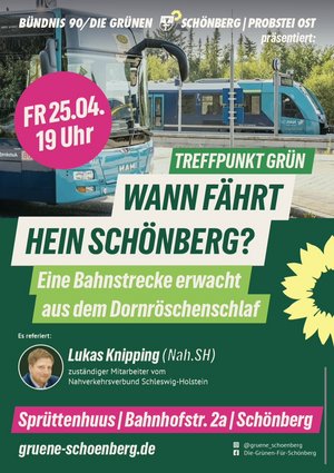 Lukas Knipping, zuständiger Mitarbeiter vom Nahverkehrsverbund Schleswig-Holstein, wird über die Geschichte, den aktuellen Stand der Wiederinbetriebnahme der Strecke von Kiel nach Schönberger Strand und die weitere Planung dieser auch für die Probstei so wichtigen Nahverkehrsanbindung berichten.